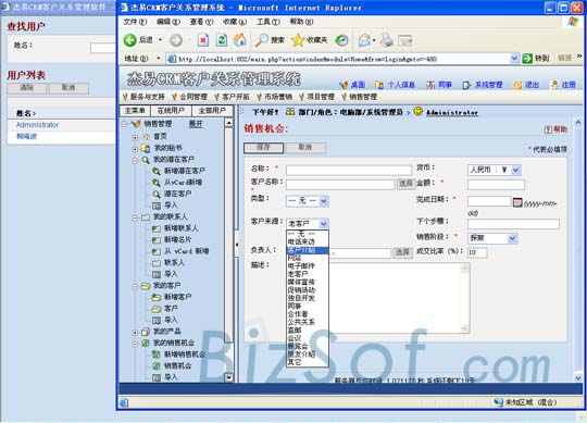 上圖是杰易CRM客戶關(guān)系管理系統(tǒng)的營(yíng)銷(xiāo)活動(dòng)管理模塊。該模塊將營(yíng)銷(xiāo)活動(dòng)和目標(biāo)管理分了七項(xiàng)管理,操作很是簡(jiǎn)單但功能還非常到位。下圖是銷(xiāo)售機(jī)會(huì)模塊,筆者認(rèn)為此模塊設(shè)計(jì)者的思路特別周到,用戶可以隨時(shí)對(duì)自己銷(xiāo)售機(jī)會(huì)的狀況有一個(gè)清晰的掌控,利于銷(xiāo)售進(jìn)程的安排。