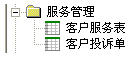 服務(wù)管理模塊由客戶投訴單和客戶服務(wù)表組成。這其中存在著一個(gè)工組流轉(zhuǎn)。客服人員填寫客戶投訴單,技術(shù)部經(jīng)理審批客戶投訴單,被指派的人員辦理客戶服務(wù)表。
