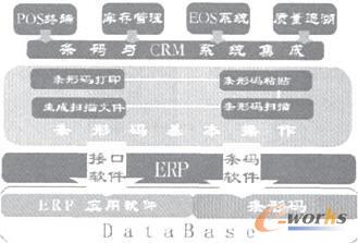 條碼技術的成熟使企業(yè)可以大范罔地得到應用,充分解決企業(yè)管理系統(tǒng)中海量數(shù)據(jù)的管理和采集的難題,把條碼技術與CRM進行無縫集成,為企業(yè)的ERP打下基礎,具體集成框架圖如圖2。