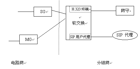 在電路-分組領域,軟交換可與分組終端進行互通,實現分組網與電路網的互通。如在H.323呼叫中,軟交換可視為H.323終端,在SIP呼叫中,可視為用戶代理(UA),如圖9所示。