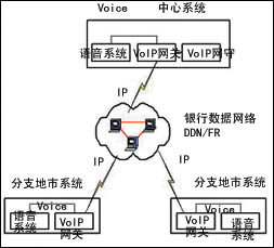 語(yǔ)音聯(lián)網(wǎng)可以由多個(gè)地市系統(tǒng)組成,同時(shí)可以將Voice Over IP聯(lián)網(wǎng)的關(guān)守設(shè)立在中心系統(tǒng)或其中的某一個(gè)地市,地市之間的語(yǔ)音聯(lián)網(wǎng)的數(shù)據(jù)通道可以利用銀行現(xiàn)有的數(shù)據(jù)網(wǎng)絡(luò)來(lái)支持,并根據(jù)需要分配帶寬。