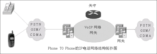 雖然從方式上看,IP話音業(yè)務包括了Phone TO Phone、PC TO Phone及PC TO PC三種方式,但是國內主流的IP電話網絡仍然是以Phone TO Phone方式進行,其網絡拓撲結構如圖所示。