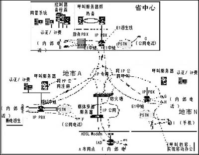 以圖3為例,一旦在現有IP網絡上部署VoIP系統(tǒng),則任意兩部內線電話之間(A,B,D,E,G,H,J)可以完全免費撥打。另外,借助各地運營商提供的落地中繼資源,具有權限的內部電話可以自由撥打本地、異地PSTN電話(C,F,I),僅需支付被叫所在地的市話費。