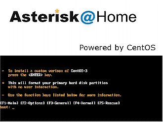 圖1:Asterisk@Home安裝啟動屏幕