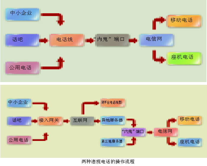 一年半以來(lái),“違規(guī)電話”正通過(guò)地下推銷方式,在小型企業(yè)及SOHO辦公市場(chǎng)、黑話吧和公用電話市場(chǎng)迅速發(fā)展起來(lái),加上由此涉及到的語(yǔ)音接入網(wǎng)關(guān)設(shè)備、VoIP電話等,總體規(guī)模之大,已經(jīng)不容忽視。一方面,違規(guī)電話正在給運(yùn)營(yíng)商帶來(lái)越來(lái)越多的損失; 另一方面,也使正在使用這些業(yè)務(wù)的客戶們身陷無(wú)從控制的風(fēng)險(xiǎn)。