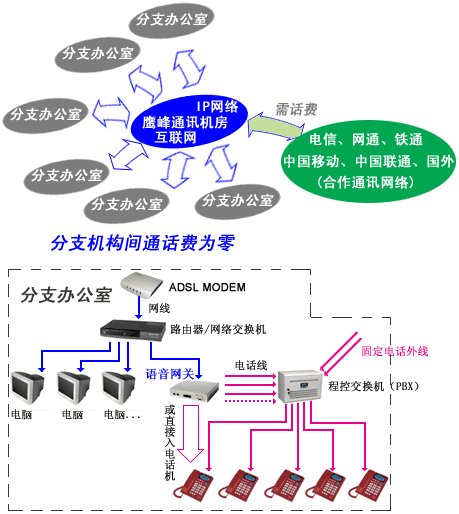 針對(duì)以上現(xiàn)狀,鷹峰NGN組網(wǎng)方案協(xié)助A公司在中國(guó)總部進(jìn)行了周密的分析與考察并就相關(guān)的產(chǎn)品技術(shù)進(jìn)行了深入的研究與探討,提供了以A公司在中國(guó)現(xiàn)有數(shù)據(jù)專(zhuān)網(wǎng)為基礎(chǔ)的,融合語(yǔ)音通信的解決方案,這是一套充分利用A公司現(xiàn)有數(shù)據(jù)網(wǎng)絡(luò)資源優(yōu)勢(shì),可行、先進(jìn)、完整的企業(yè)VoIP通信解決方案。將最終以A公司目前在中國(guó)所有機(jī)構(gòu)為結(jié)點(diǎn),組成在中國(guó)的VoIP網(wǎng)絡(luò)。方案匯集了鷹峰通訊所有最新PBX/語(yǔ)音網(wǎng)關(guān)及網(wǎng)絡(luò)通訊技術(shù)及設(shè)備,保護(hù)了原有的交換機(jī)資源,不改變撥號(hào)習(xí)慣,體現(xiàn)了非?捎^的經(jīng)濟(jì)效益,并且實(shí)現(xiàn)了快速實(shí)施,將投入的時(shí)間,資金縮到了最小。