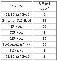 K,其實際映射到WIMAX空口的整個過程是需經(jīng)很多次封裝。各種封裝協(xié)議所額外占用的開銷,如表1所示。