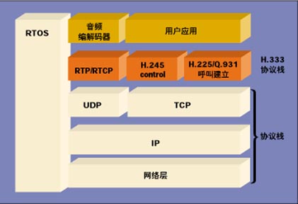 Q.931/H.225流程包括呼叫建立和拆除。圖1表示一個(gè)完整的H.323協(xié)議棧的實(shí)現(xiàn)。值得指出的是,該實(shí)現(xiàn)依賴于網(wǎng)絡(luò)協(xié)議棧和實(shí)時(shí)操作系統(tǒng)(RTOS)。多數(shù)應(yīng)用系統(tǒng)需要RTOS以便同時(shí)處理多個(gè)流程和/或呼叫。