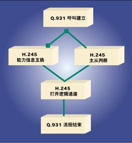 Q.931呼叫建立流程啟動(dòng)呼叫建立過程并且通知遠(yuǎn)程終端有一個(gè)呼入。當(dāng)呼叫建立起來后,某個(gè)終端可能啟動(dòng)H.245規(guī)定的主從判斷流程或能力信息互換流程。每個(gè)終端都需要執(zhí)行能力信息互換流程,但是只要一個(gè)終端執(zhí)行主從判斷流程就可以了。主從判斷和能力信息互換完成后,邏輯信道打通了。最后,該對話通過另一個(gè)Q.931流程關(guān)閉。
