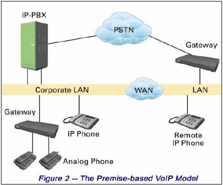 與托管VoIP模式相比,基于內(nèi)建的模式在中小型企業(yè)設(shè)施中設(shè)有IP PBX (圖2)。在此架構(gòu)下,供應(yīng)商一般會提供捆綁業(yè)務(wù),包括基于因特網(wǎng)接入的