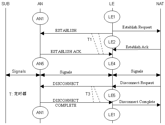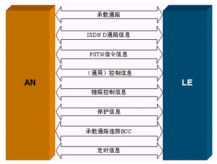 PSTN規(guī)定了AN如何獲取PSTN用戶線(模擬和數(shù)字)狀態(tài),以及如何向LE傳遞,以便由LE最終完成呼叫控制。其中可能包括特定呼叫協(xié)議的轉(zhuǎn)換和翻譯以滿足核心網(wǎng)中的LE信令標(biāo)準(zhǔn)。