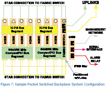 圖7所示為Dialogic 網(wǎng)絡(luò)結(jié)構(gòu)ZT 50904U常規(guī)用途分組交換平臺的底板配置。 這種7個插槽,CompactPCI開發(fā)平臺符合PICMG2.16的分組交換底板規(guī)范。