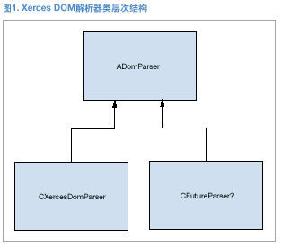 Xerces DOM解析器對(duì)象的類層次結(jié)構(gòu)非常類似于其它CSF電話網(wǎng)絡(luò)、數(shù)據(jù)通信或語(yǔ)音設(shè)備。抽象的DOM解析器設(shè)備包括實(shí)施任何類似解析器的有用狀態(tài)信息和基本數(shù)據(jù)及方法。具體的XercesDOMParser類出自于抽象類,并提供了針對(duì)特定Xerces解析器的具體方法和數(shù)據(jù)。其它類似的DOM解析器如果添加到CSF,也可以基于同樣的抽象類進(jìn)行構(gòu)建。圖1詳細(xì)描述了該類層次結(jié)構(gòu)。