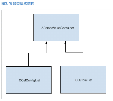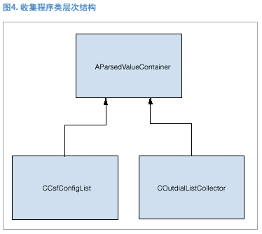 AparsedValueContainer類沒(méi)有數(shù)據(jù)和方法。它僅用于配合收集程序類的運(yùn)行。(見(jiàn)圖3。)抽象收集程序類純虛擬功能CollectValues()的第二個(gè)影響因素是容器,當(dāng)在具體收集程序類實(shí)施中定義了容器時(shí),必須使用通用的基礎(chǔ)類。所以在真正使用容器之前,必須在每個(gè)具體的收集程序類中進(jìn)行向下類型轉(zhuǎn)換。