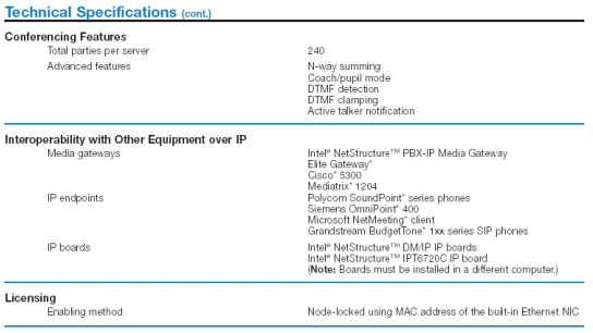 | 會議功能包括教練,Active talker檢測,Tone clamping, 回音消除,每系統最大限度120