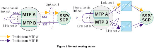 MTP A和MTP B之間的鏈路的設置方法與其他任何SS7鏈路和鏈路集相同。如果有額外的數(shù)據(jù)設置表明此鏈路與其他連接相鄰節(jié)點的鏈路不同,應區(qū)別對待。