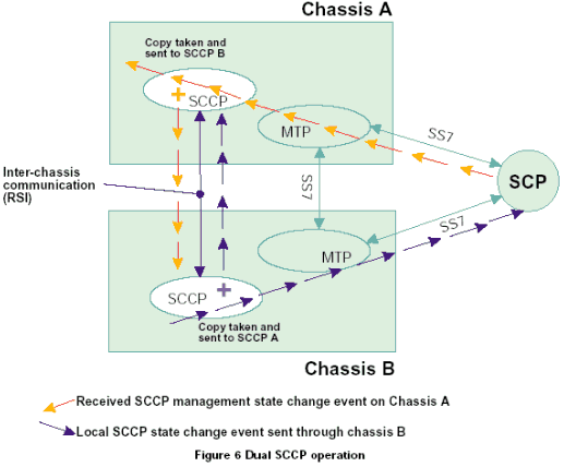 SCCP通過支持可尋址的子系統(tǒng)概念提高了消息傳遞部分(MTP)的路由能力。所有已知的本地和遠端子系統(tǒng)的路由可用性(允許狀態(tài)或禁止狀態(tài))在SCCP層中進行管理。在一個由N個SCCP層(或多個SCCP的實例)組成作為同一節(jié)點編碼的系統(tǒng)中,用戶應用程序和遠端節(jié)點需要能夠通過任何SCCP實例交換SCCP數(shù)據(jù)消息,并且希望每個SCCP中的路由表都是相同的。為了達到這個目的,需要使用廣播機制增強SCCP層,這種機制將本地或遠端的路由狀態(tài)的任何改變發(fā)送到廣播任務。廣播任務負責將路由變化傳送到N-1(其他)SCCP實例。在雙系統(tǒng)中,廣播任務只是另一個SCCP層,這兩層使用基于消息的API進行通信。在一個雙機箱/子機架環(huán)境中,這些消息可以由RSI和TCP/IP組合來傳遞。