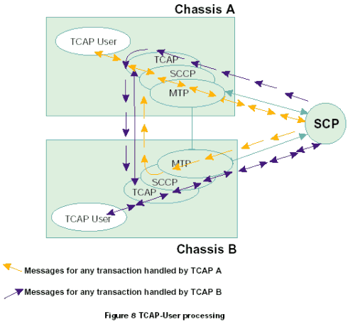 每個TCAP將所有接收的信息傳遞到同機箱中的TCAP用戶任務中,根據(jù)每一個TCAP中不同的應用層或用戶,將TCAP層的應用程序發(fā)送的傳送會話和組件原語傳遞給正確的TCAP。在一個雙系統(tǒng)環(huán)境中,接收的消息可以在任何MTP和SCCP層上共享。因此,一個TCAP層接收由其他TCAP處理的應用在激活事務上的TCAP消息是可能的。