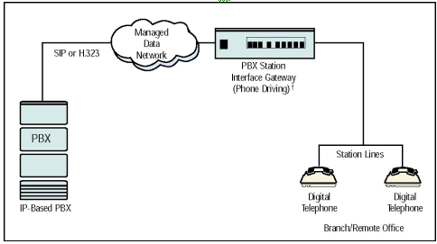 PBX-IP 媒體網(wǎng)關(guān)和傳統(tǒng)PBX或傳統(tǒng)數(shù)字電話通信, 通過廠商私有的連接, 把呼叫控制和語音數(shù)據(jù)從傳統(tǒng)PBX設(shè)備轉(zhuǎn)換傳送到包交換網(wǎng)絡(luò).